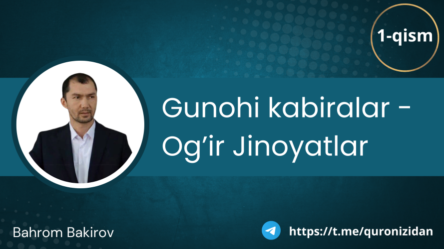аудио мақолавидео мақолалар Gunohi kabiralar/katta jinoyatlar 1-qism 27/03/20269 кўрилди Post Views: 9 ёлғон Қуръон ўғрилик Ширк Ilohiy adolat — qilmish qidirmish. Savol-javoblar